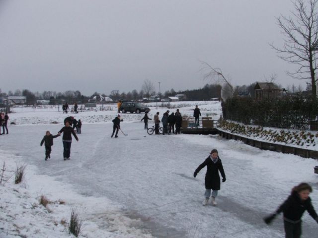 In het nieuwbouwplan Heilaren-Noord aan de Mariëngaard wordt druk geschaatst. Buurtvereniging Heilaren Noord wenst iedereen hier veel ijsplezier. Er is zelfs 'koek en zopie'. Bij de familie van Erp op de vlonder is koffie, chocolademelk, erwtensoep en allerlei lekkere koeken.
