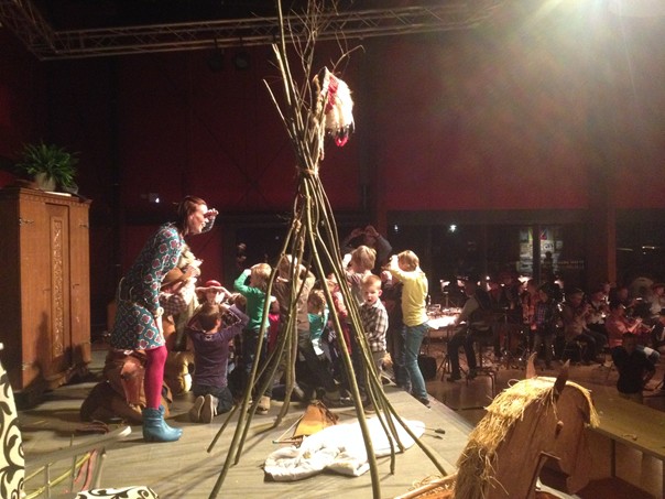 De orkestleden waren verkleed als indiaan en cowboy en speelde alle muziekstukken in de voorstelling.