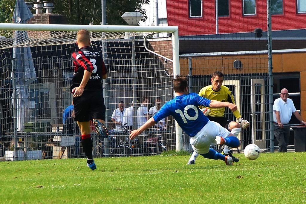 De uitploeg begon sterk en kreeg van BVV de ruimte om op te bouwen. Na ruim 10 minuten leverde dit de eerste kans van de wedstrijd op toen Stef Adank Heeswijk-spits Wouter van Dijke diep stuurde. Van Dijke was pas net teruggekeerd van zijn Griekse vakantieadres, maar hij had zijn tor-instinct duidelijk niet op het strand laten liggen. Na een korte sprint gleed hij de bal keurig voorbij de uitstormende doelman, 0-1. De blauw-witten bleven daarna sterker en niet veel later had Van Dijke opnieuw kunnen scoren, maar nu stond de Bossche goalie succes in de weg. In het restant van de eerste helft werd de thuisploeg af en toe gevaarlijk door slippertjes aan Heeswijk-zijde, maar tot echte kansen leidde dit niet.